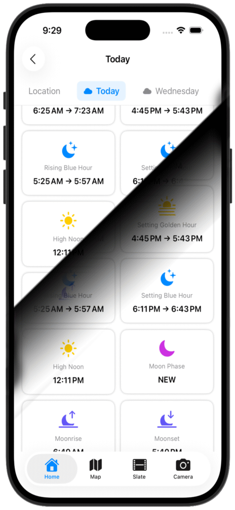• Time & Light Awareness — Capture the moment with context, from golden hour to moonrise.