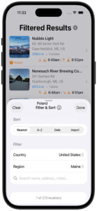 - You want all your Maine lighthouses from 2023 → filter United States → Maine, then search
