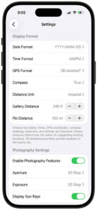 Match your workflow: Configure Display Format settings to match how you typically work. If you use The Photographer’s Ephemeris frequently, keep GPS Format set to decimal degrees (DD.dddddd°) for easy copy-paste compatibility.